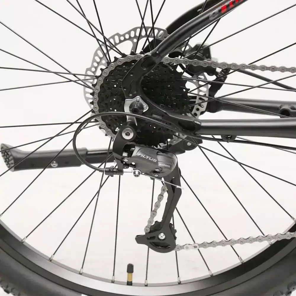 Wheels:27.5″x2.8x13Gx36H, alloy double wall rim, black