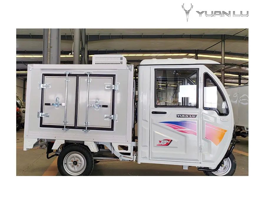 This refrigertor tricycle is hybrid, gasoline and electric, it has extender 5L tank and two sets of battery, its range can be above 200km, very suitable for Africa countries. The temperature can be -20C, it is very perfect for icea cream and frozen meat, pizza and fish transport.