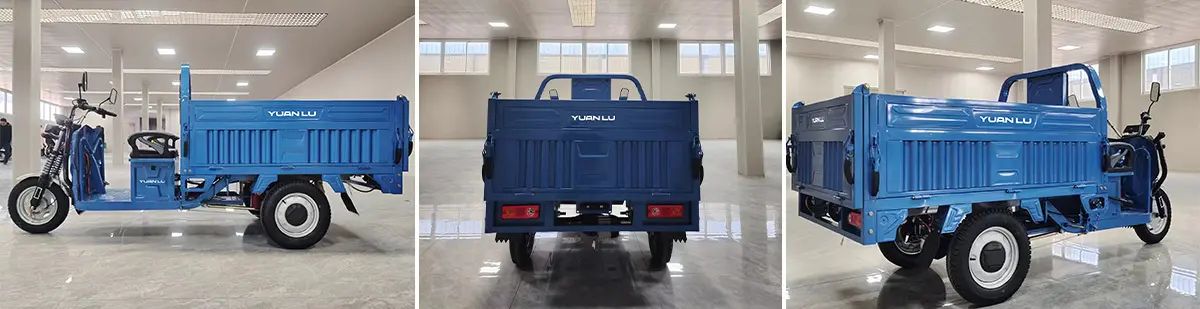 Electric Tricycles 3-Wheel Electric Cargo Bike with Automatic Lifting Hydraulic Rod Front Disc + Rear Drum Brake 2t Loading Capacity